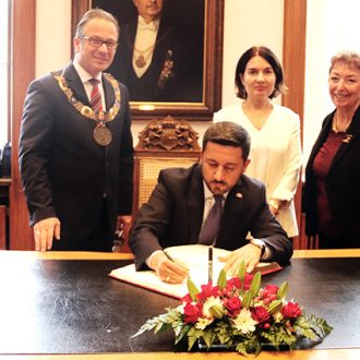 Der neue Bürgermeister der türkischen Partnerstadt Nevşehir, der Hauptstadt Kappadokiens in Zentralanatolien, Rasim Arı, kam zum Antrittsbesuch in die Quirinusstadt. Bürgermeister Reiner Breuer begrüßte seinen Amtskollegen im Neusser Rathaus, wo …