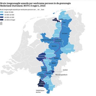 Die Arbeitsproduktivität, also die Bruttowertschöpfung je Erwerbstätigem, war in den Niederlanden im Jahr 2015 mit 69 836 € höher als in Nordrhein-Westfalen (63 490 €) und in Niedersachsen (58 370 €). In den grenznahen Regionen – …
