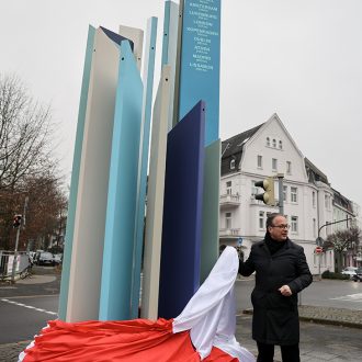 Neuss: Bürgermeister Reiner Breuer enthüllte am heutigen Freitag, dem 12. Januar, die aufwendig restaurierte Europa-Stele am Friedrich-Ebert-Platz. Das Kunstwerk des Neusser Künstlers Peter Hermann Schütz steht dort seit dem Europatag …