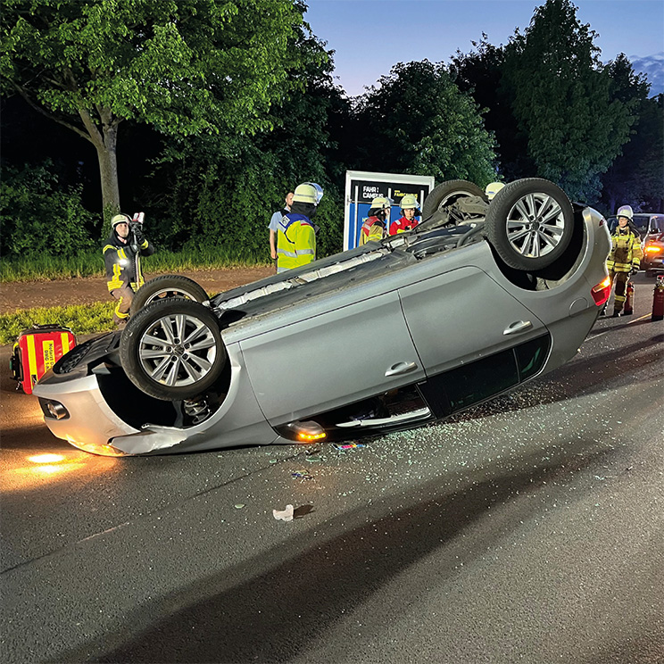 Dormagen. Die Feuerwehr der Stadt Dormagen ist am Montagabend, 27. April, gemeinsam mit dem Rettungsdienst gegen 21 Uhr zu einem Verkehrsunfall auf die Dr.-Geldmacher-Straße im Stadtteil Hackenbroich alarmiert worden. Eine 87jährige Autofahrerin kollidierte aus bislang ungeklärter Ursache mit einem geparkten Anhänger, woraufhin sich ihr Fahrzeug überschlug. Die Fahrerin konnte sich eigenständig aus dem Wagen befreien und wurde durch die Einsatzkräfte medizinisch versorgt sowie anschließend in ein nahegelegenes Krankenhaus gebracht.