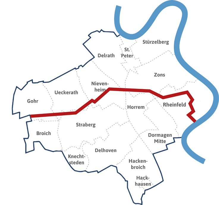 Die Arbeiten betreffen den Trassenbereich der Rheinwassertransportleitung, den Bereich der neuen Zuwegung zum einem Pumpbauwerk in Rheinfeld an der Kläranlage Dormagen sowie die Zufahrt zum Entnahmebauwerk. Die Maßnahmen sollen in der kommenden Woche abgeschlossen sein.